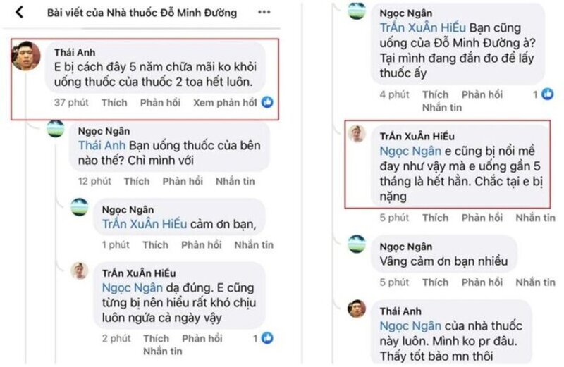 Sau này, mình biết căn bệnh này rất phổ biến nên nghĩ chắc chắn sẽ phải có cách chữa. Lần mò tìm thử cách chữa dị ứng thời tiết lạnh, nổi mề đay mẩn ngứa trên mạng, bất chợt mình thấy bài thuốc Mề Đay Đỗ Minh của Đỗ Minh Đường được rất nhiều người nhắc đến trên các hội nhóm. Tìm hiểu kỹ cả kênh youtube nhà thuốc Đỗ Minh Đường, mình rất thấy nhiều người bệnh phản hồi tích cực.