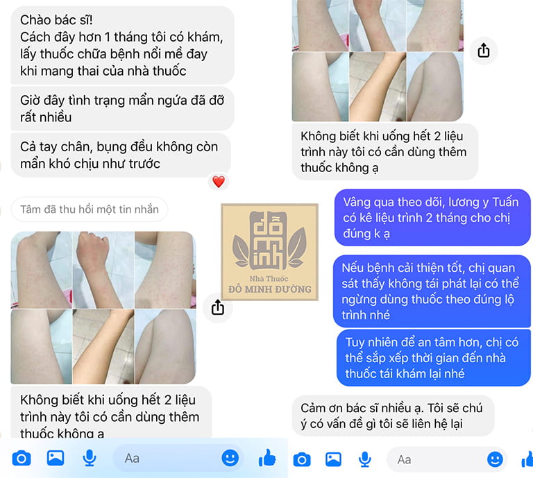 Ngoài chị Oanh, chị Vui, các mẹ bầu có thể xem thêm những đánh giá của người sử dụng bài thuốc của Đỗ Minh Đường chữa mề đay khi mang thai: